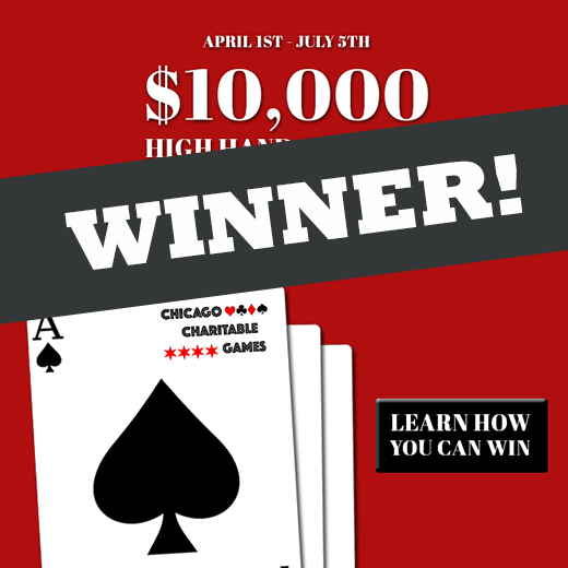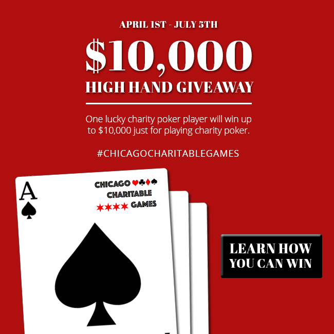 Chicago Charitable Games along with our hosting charities are excited to announce the $10,000 High Hand Giveaway. It’s your chance to win $10,000 just for playing charity poker! The High Hand Giveaway beings April 1st and runs through July 5th. All the details...